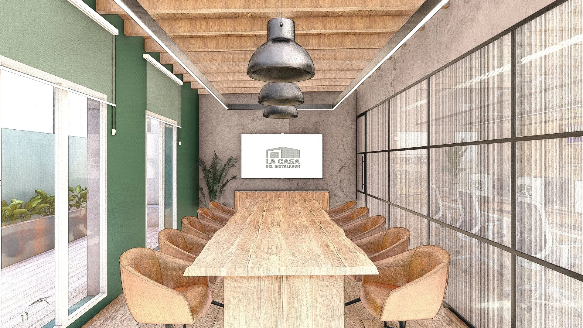 El proyecto aborda el diseño interior de un espacio de oficinas desde una mirada funcional y contemporánea, tomando elementos propios de la estética industrial como el hormigón visto, la carpintería metálica negra y la madera natural.