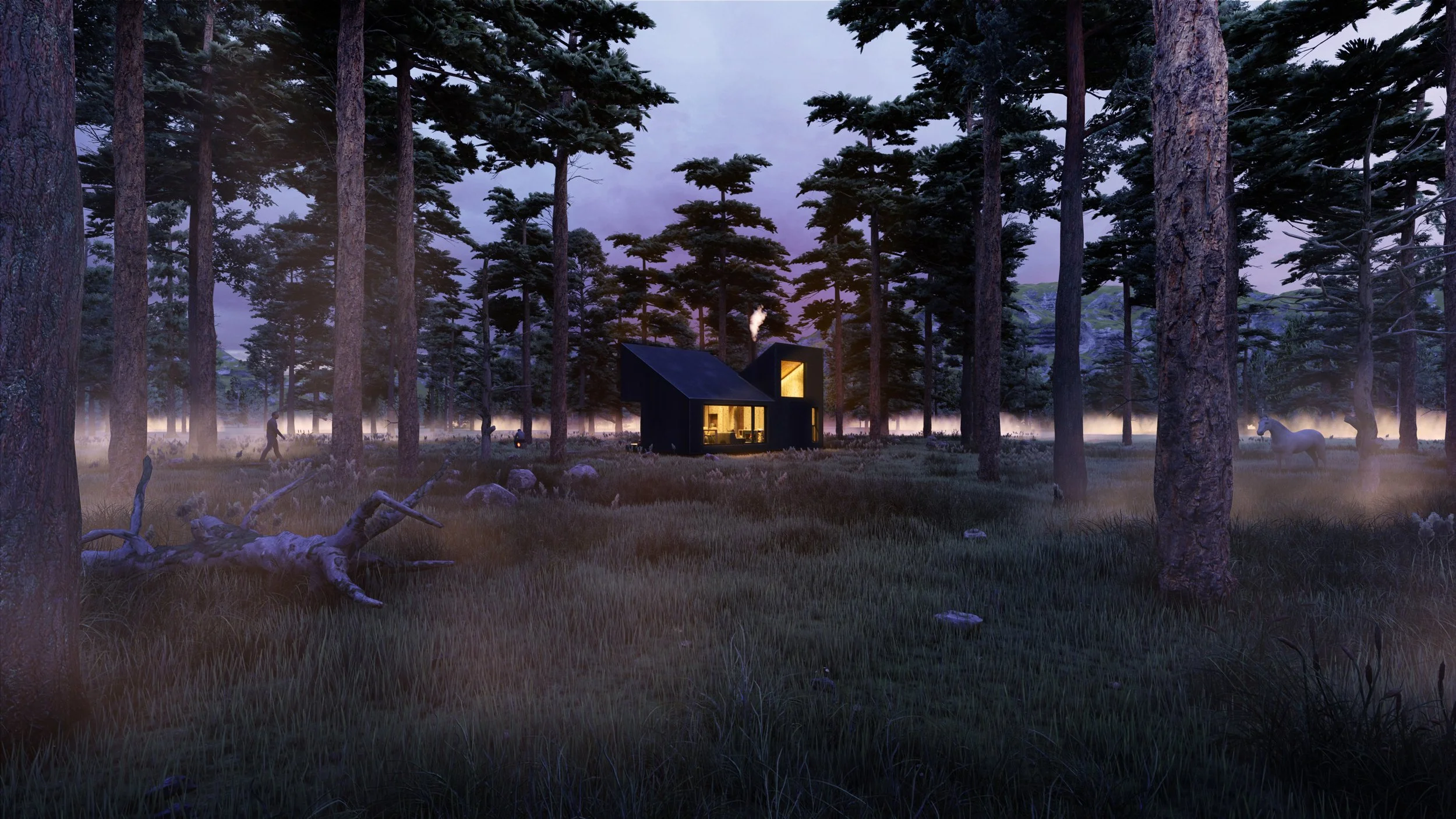 El proyecto se implanta entre la vegetación, con la premisa de desaparecer más que destacar. La morfología compacta y oscura dialoga con el entorno sin competir, reflejando la calma y el misterio del lugar